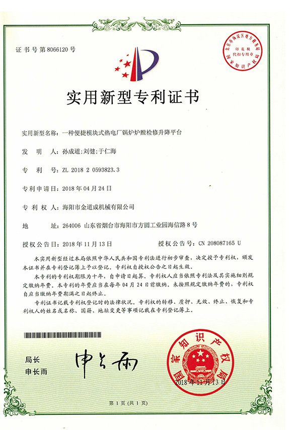 新闻中心下支撑折叠式锅炉炉膛检修平台行业首项国家专利发明者
